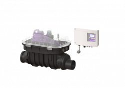 Включает Plug & Play блок управления с возможностью подключения к Автоматизированной Системы Управления Зданием (АСУЗ) и звуковому датчику, с дисплеем, для контроля режима работы, аккумуляторной буферизацией, защитой IP 54, с интегрированной системой самодиагностики SDS, моторизированной заслонкой, корпусом Pumpfix F с степенью защитой IP 68 (3 м, 24 ч).